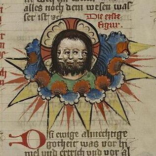 Spiegel des Leidens Christi, Colmar, Bib. mun., ms. 306, Bl. 1v